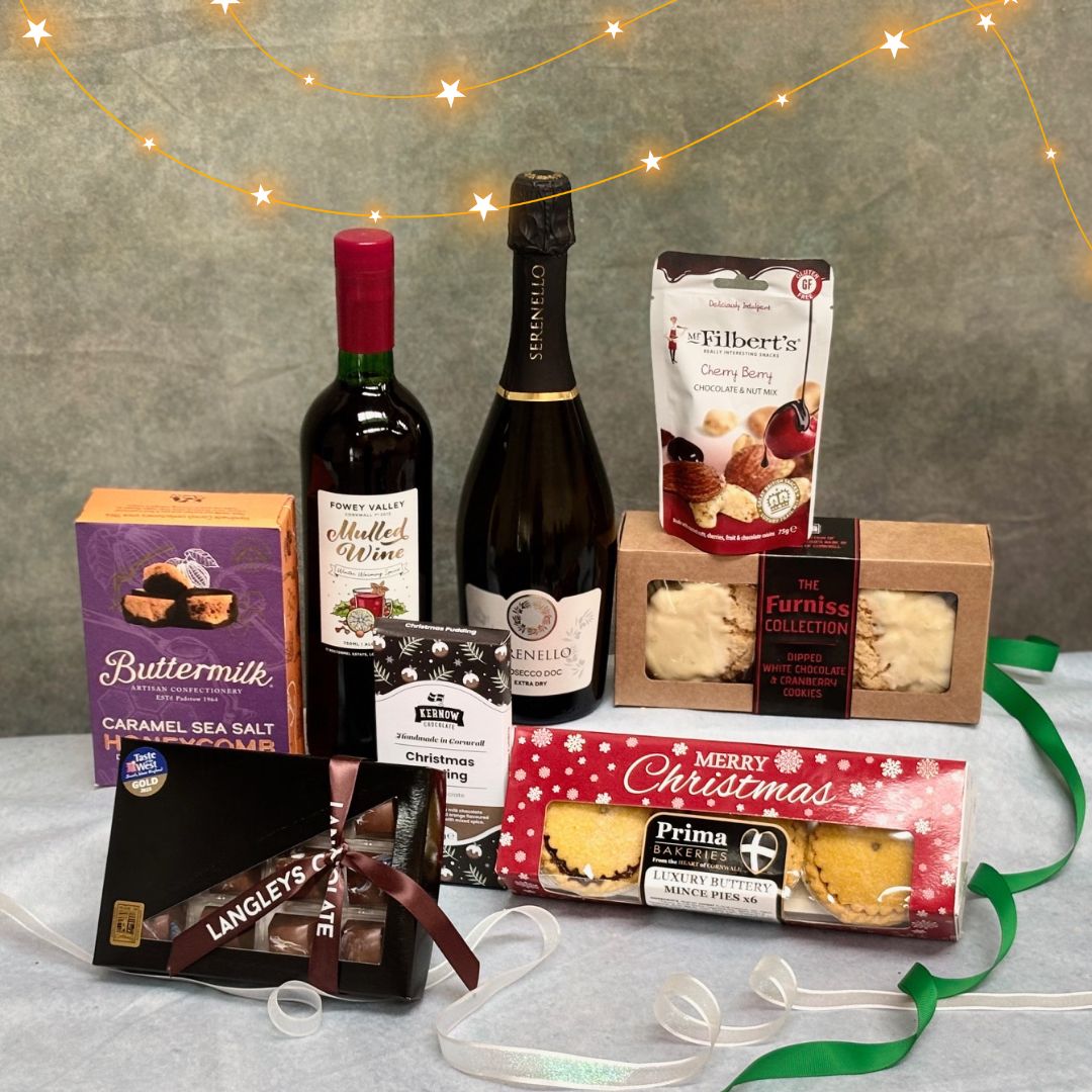 Celebrate the season in style with our festive gift box — featuring mulled wine, Prosecco, artisan chocolates, honeycomb, cookies, and more. Perfect for gifting or indulging. This hamper comes with FREE weekday delivery across the UK and a handwritten gift card.