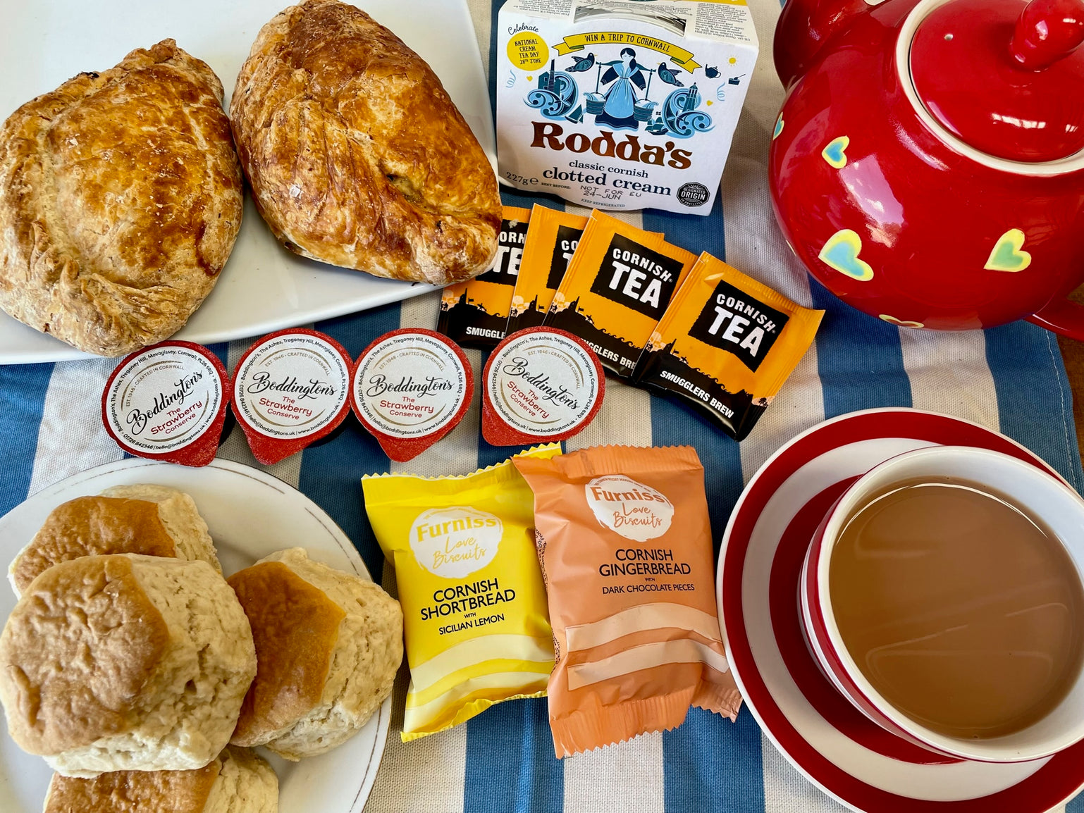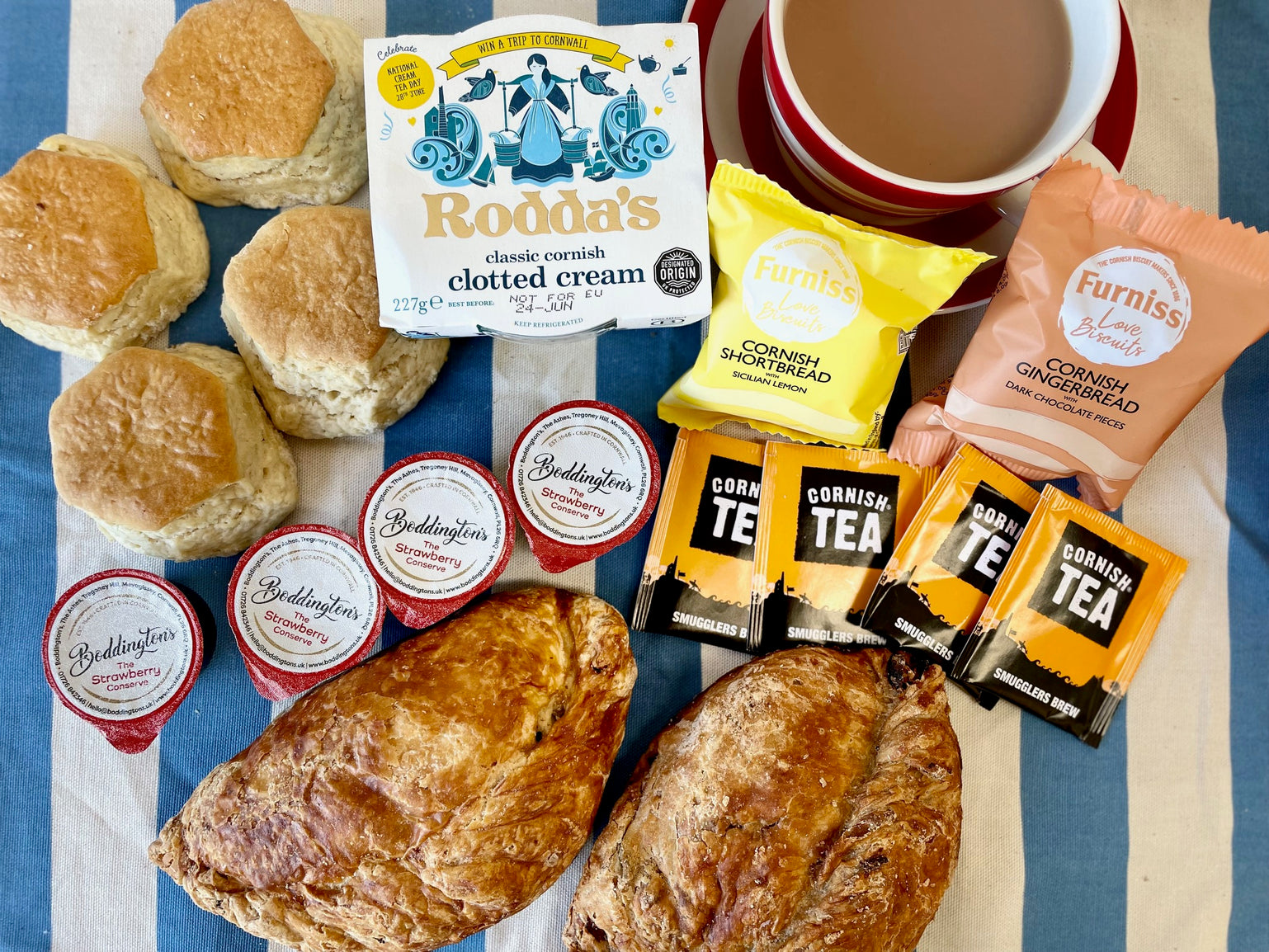 Gluten free Cornish Cream Tea & Pasties Hamper with free UK delivery. Coeliac registered bakery, delicious Cornish produce, tracked chilled delivery.